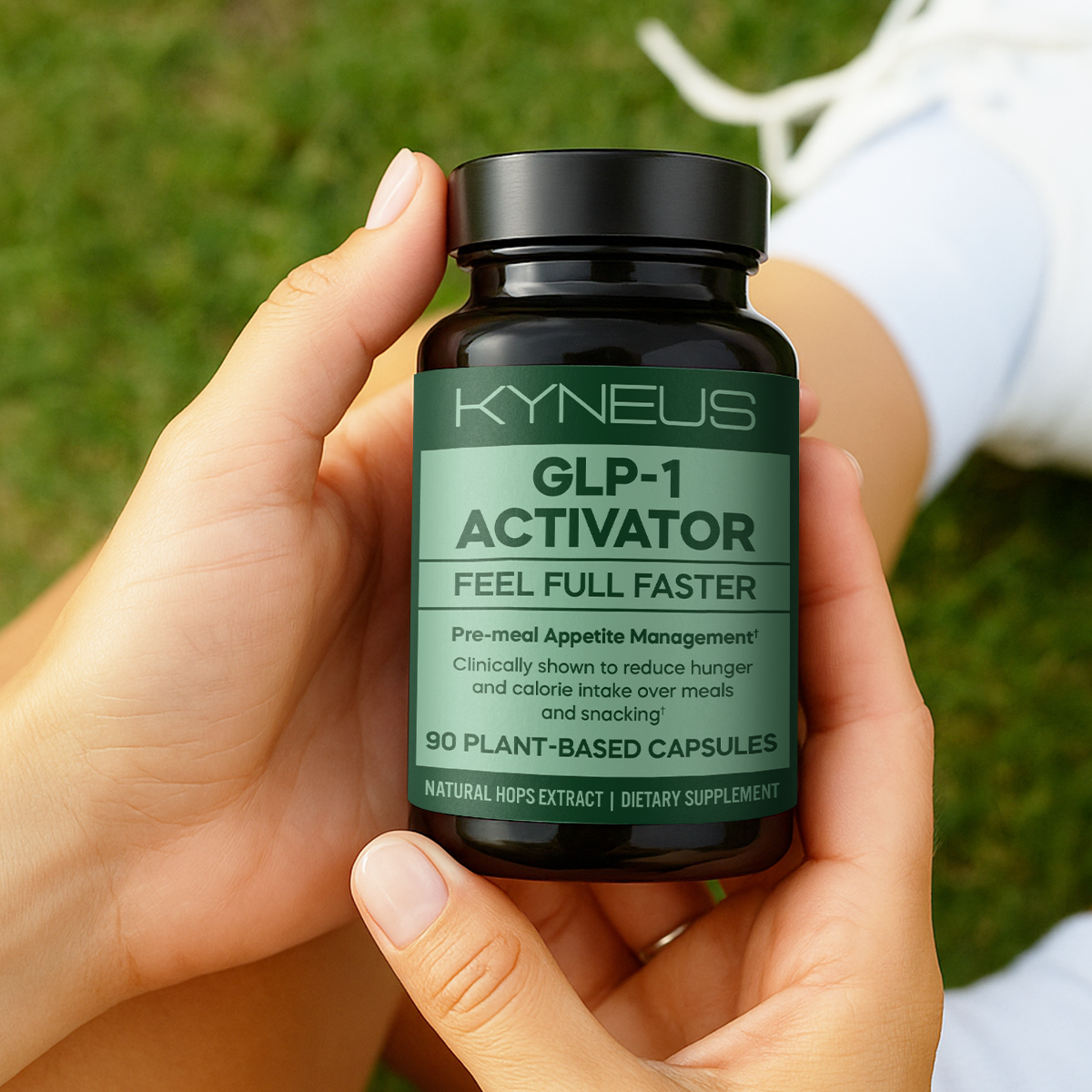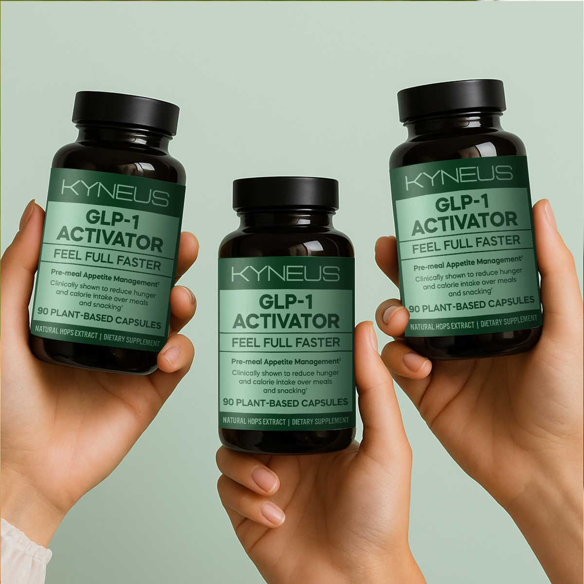 Kyneus is 100% natural and harnesses the power of Amarasate™ (a New Zealand hops flower extract) to naturally support GLP-1 activation, helping reduce your cravings and hunger to stay on track. Our formula is proven with 15 years clinical research in humans, is safe, and free from synthetic additives.